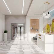· Дизайнерское лобби с местом для консьержа и санитарной комнатой