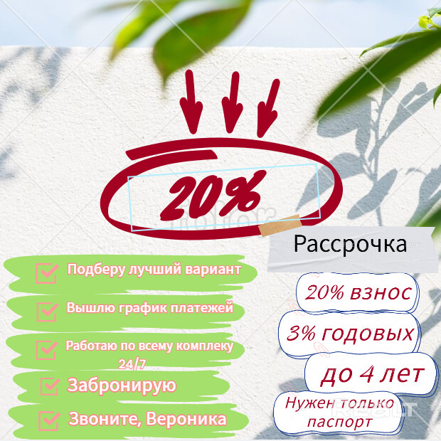 - выгодная рассрочка (20% первоначальный взнос) без справок и поручителей. Сделаю расчет, звоните!