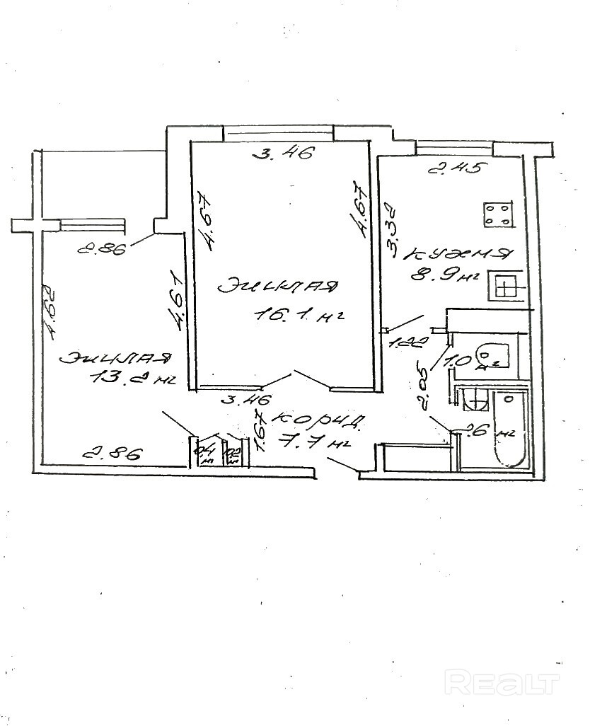 Квартира на 7 этаже. Две жилые комнаты 13.2 кв.м., 16.1 кв.м. Кухня 8.9 кв.м. Лоджия 1.2 кв.м. Рядом метро Уручье. Всё необходимое в шаговой доступности.