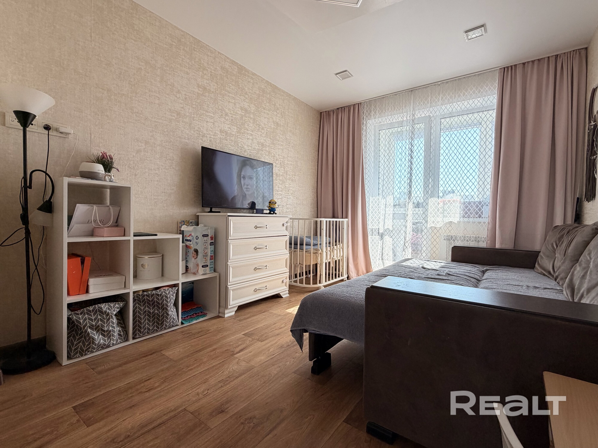 АГЕНТАМ НЕ БЕСПОКОИТЬ! Теплая светлая однокомнатная квартира в тихом и уютном районе в доме 2014 года постройки. Окна выходят во двор (солнечная сторона). Вся мебель остаётся. Придомовая парковка со шлагбаумом. С местами парковки проблем нет. Чистые подъезды, дружелюбные соседи, видеонаблюдение. Развитая инфраструктура: в пешей доступности детские сады и школы, круглосуточный Евроопт, Корона и Mile, ФОК Мандарин, парк Уго Чавеса. В этом году планируется открытие ТЦ Мегапарк. До метро 15 м
