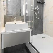 В санузле есть вся необходимая сантехника и стиральная машина.