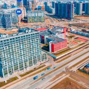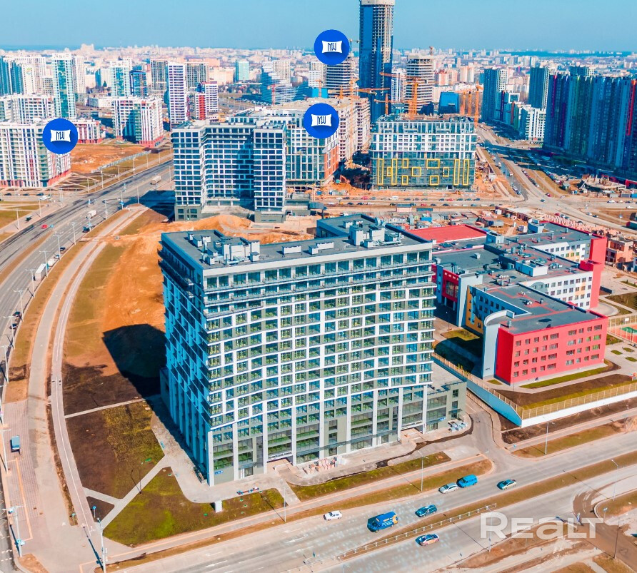 Выходите на лоджию — весь район как на ладони. Под вами — кипящая жизнь: новый Avia Mall (шопинг и кино в 5 минутах), строящийся детский сад во дворе и действующая школа с бассейном прямо под окнами.