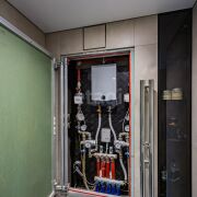· во встроенном шкафу аккуратно скрыты стиральная машина Bosch и сушильная машина LG.
