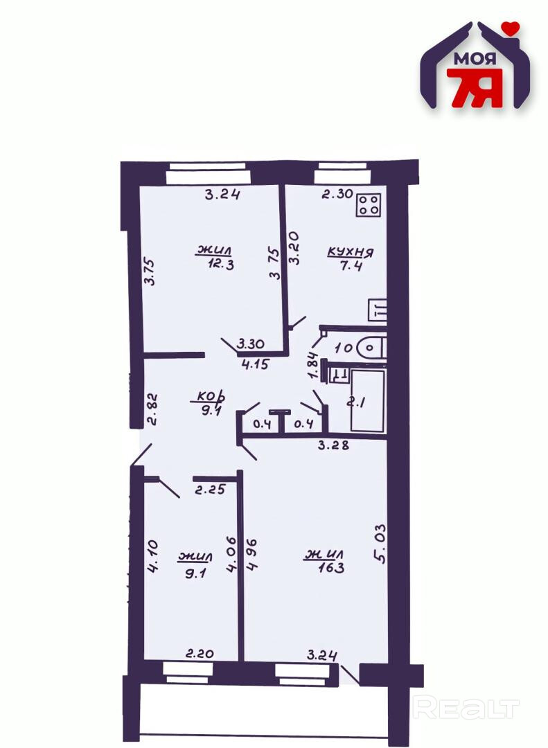 -Три полностью изолированные комнаты размерами, позволяющими комфортно обставить каждую мебелью и создать собственный уголок для каждого члена семьи.