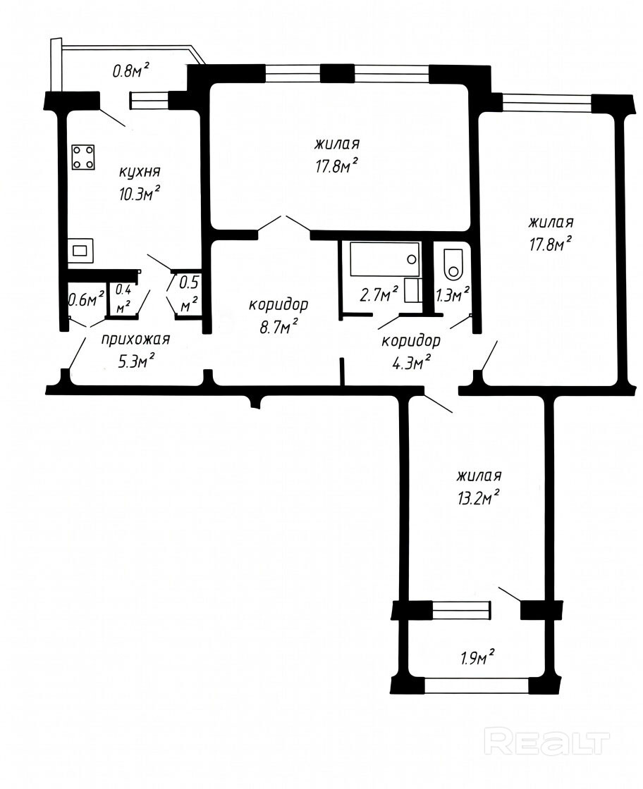 - Функциональность: три изолированные комнаты, вместительная кухня, уютная лоджия и редкое преимущество — собственный полноценный погреб.