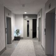 На этаже предусмотрена колясочная, 4 лифта. Современное лобби.