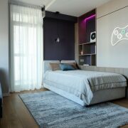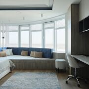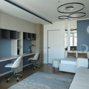 Уютная детская комната с мягкой зоной отдыха порадует прекрасными видами на водохранилище. Комфортный кабинет (или вторая детская), выдержанный в современном стиле, располагает отдельной тёплой лоджией и также потрясающими видами.