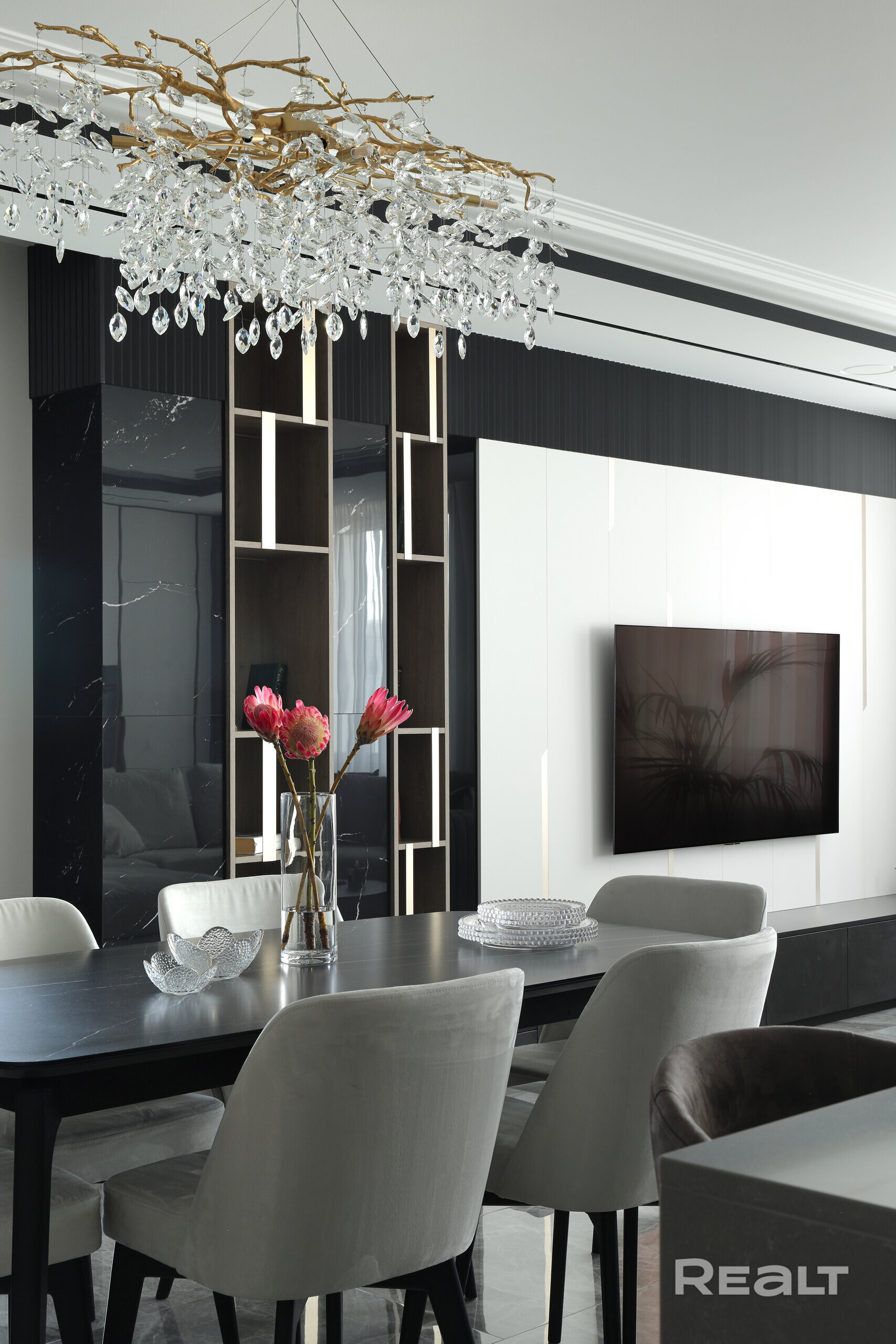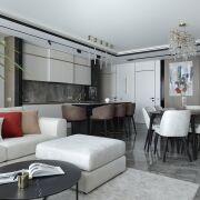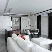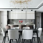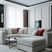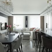 Интерьер этой квартиры — идеальное воплощение гармонии стиля и практичности, играющий на контрасте светлой и тёмной цветовой гаммы, где каждый элемент — как отдельное произведение искусства. Каждый элемент пространства — от изысканных декоративных акцентов до современных инженерных решений — тщательно продуман, что позволяет эстетике не бросать вызов практичности, а сливаться с ней, создавая гармоничное пространство для жизни.