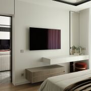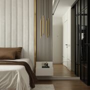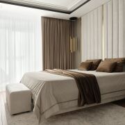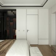 Мастер-спальня — ваша личная территория для отдыха: здесь вас ждёт роскошная двуспальная кровать, собственная гардеробная и отдельный санузел с душевой, превращающий ежедневные ритуалы в истинное удовольствие.