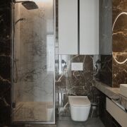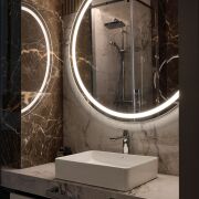 Благодаря использованию современных решений освещения — трековых светильников, нишевых подсветок, бра из натурального камня, элегантных спотов — в каждой комнате реализовано несколько сценариев освещения: общее, контурное, точечное, зональное или настенное.
