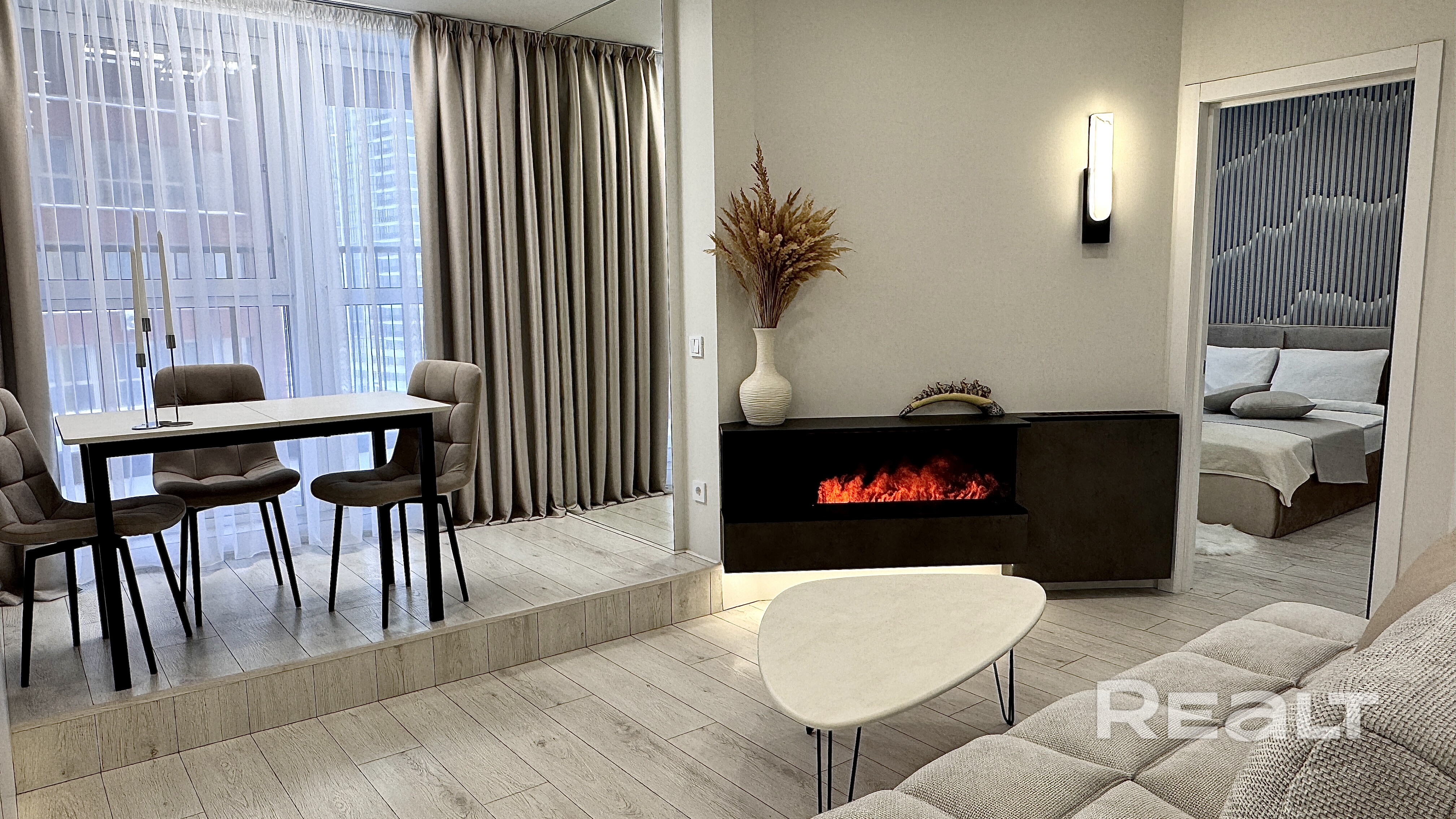 Камин-увлажнитель благодаря открытому пламени создаёт реалистичный эффект огня, наполняя квартиру уютом и теплом.