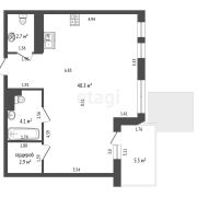 Общая площадь квартиры по СНБ составляет 51,7 м2, из которых 43,2 м2 - жилая. Высота потолков 2,74 м