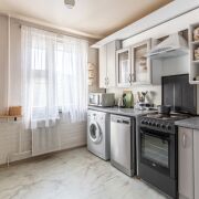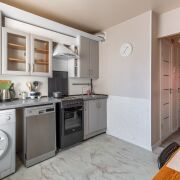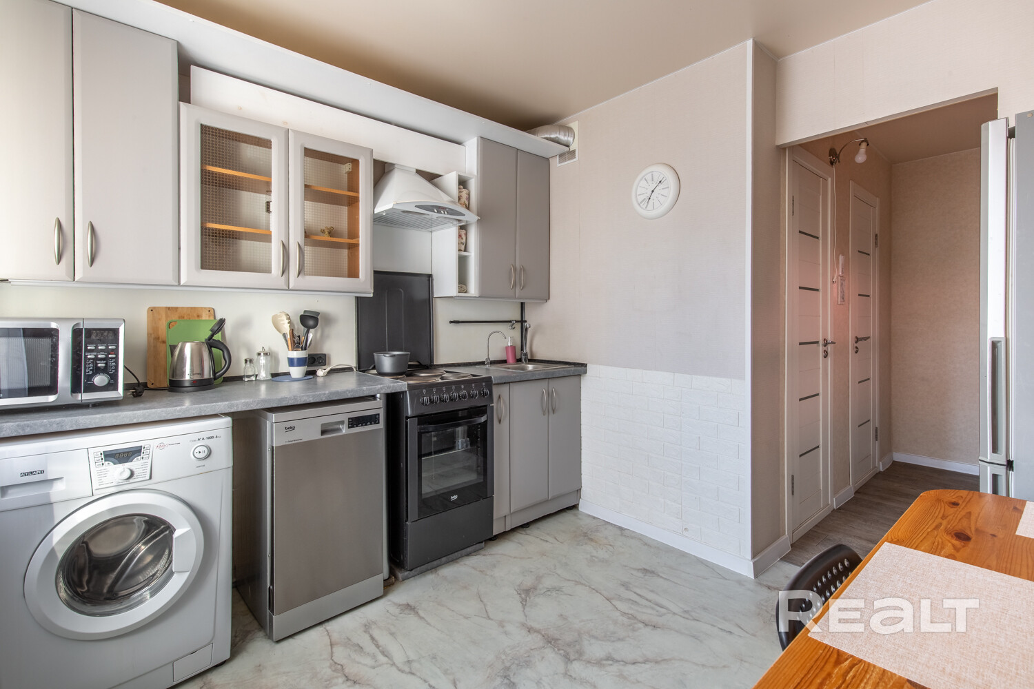 Вместительная кухня 8.9 кв м с бытовой техникой. Новым собственникам остается холодильник и посудомоечная машина.