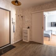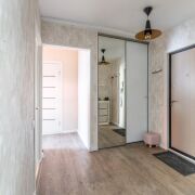 В коридоре оригинальные виниловые обои под венецианскую штукатурку.