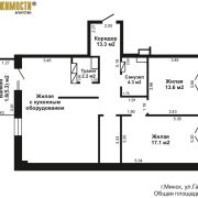 Общая площадь по СНБ 92,7 м2, жилая площадь 71,3 м2 (13,6 м2; 17,1 м2; 40,6 м2(жилая с кухонным оборудованием).