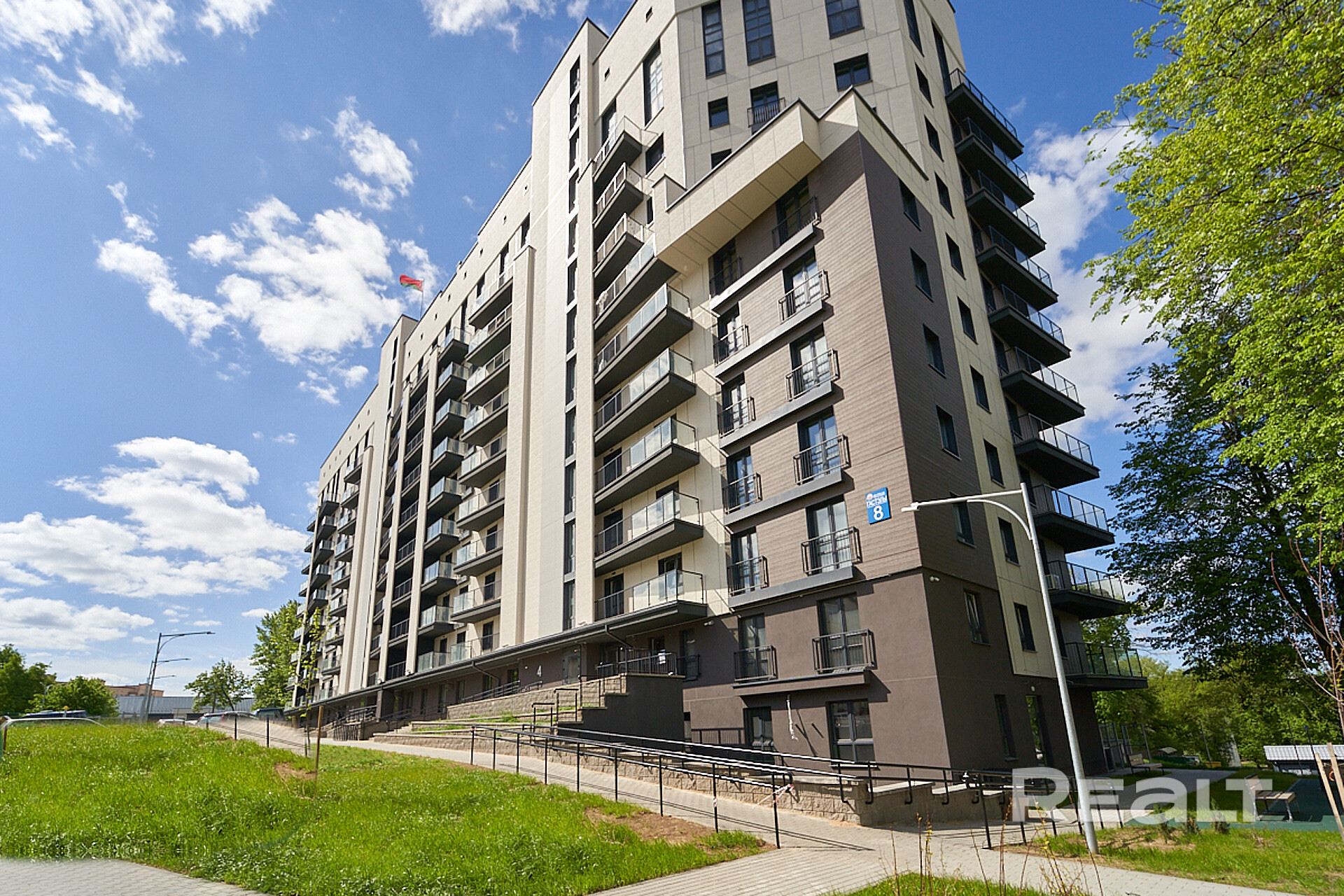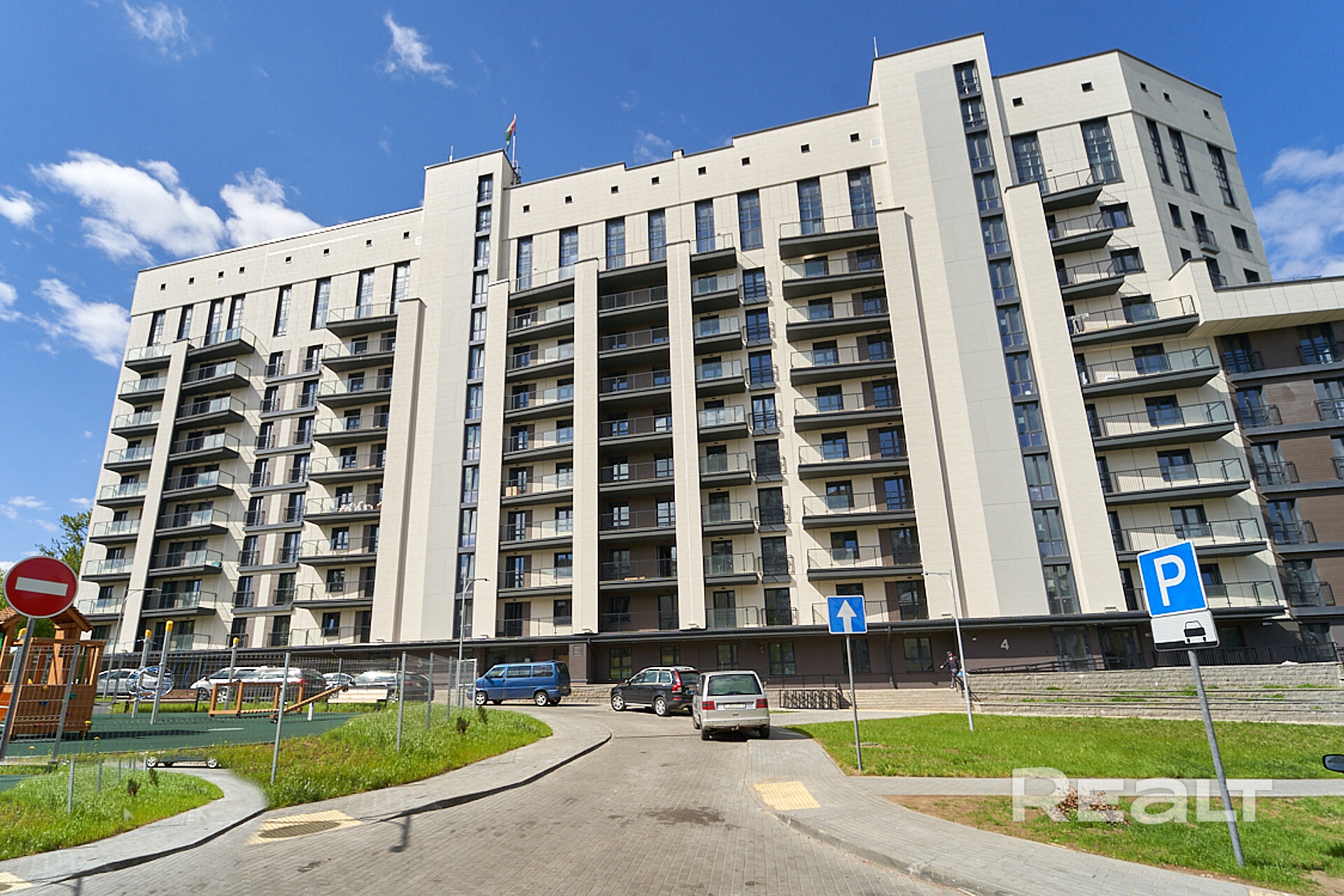 Несмотря на то, что жилой дом расположен в центре Минска, вы не заметите городской суеты и насладитесь всеми преимуществами его расположения: застройка внутри квартала, рядом находится парк Победы с пешеходными дорожками, спортплощадками, тренажерным залом под открытым небом, фонтанами и пляжной зоной.