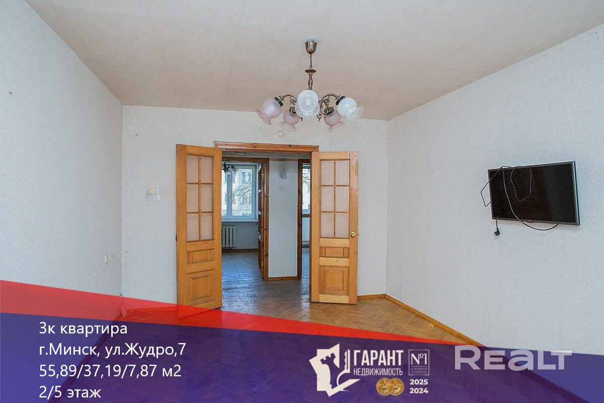 Всего в двух минутах легким шагом от станции метро "Спортивная" (ул. Жудро, 7) расположено это уютное жилье. Квартира находится на 2 этаже панельного дома 1973 года постройки (5 этажей). Общая площадь составляет 55,89 м2 по СнБ.