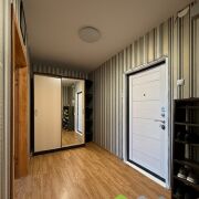 Тамбур на две квартиры. Редкое преимущество для однокомнатной квартиры. Это дополнительный барьер от сквозняков и посторонних шумов, а также аккуратное пространство для хранения сезонных вещей.