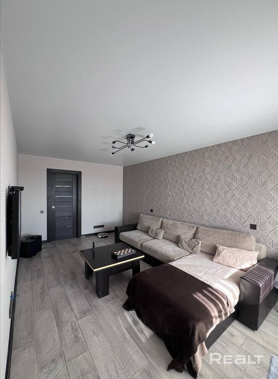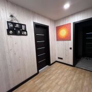 хорошее расположение в зелёной зоне, с улучшенной планировкой. квартира в состоянии, "заезжай и живи" В процессе выполнения ремонта выполнена перегородка, что позволило сделать три раздельные комнаты с гардеробной Во всех окнах установлены пластиковые стеклопакеты, на полу линолеум, плитка и ламинат, на стенах обои, потолок натяжной, сделан капитальный ремонт электропроводки, в каждую комнату идёт отдельный провод на освещения и розетки. В квартире более 70 розеток