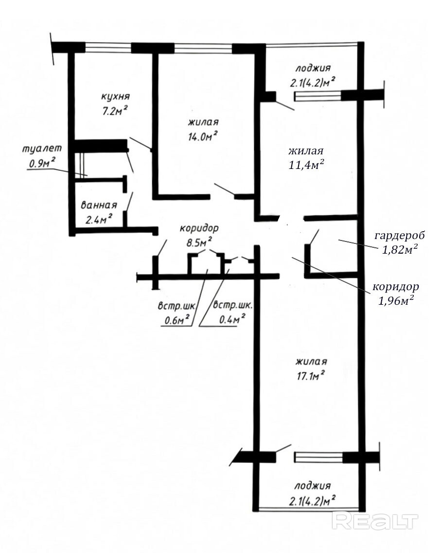 - Площадь балконов