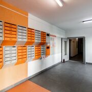 Возле дома организованы просторные парковочные места по обе стороны дома. Одна из парковок — со шлагбаумом, только для жильцов дома.