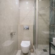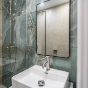 • Санузел отделан испанским керамогранитом — долговечные и качественные материалы