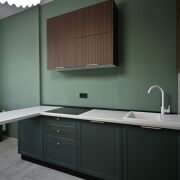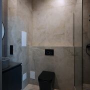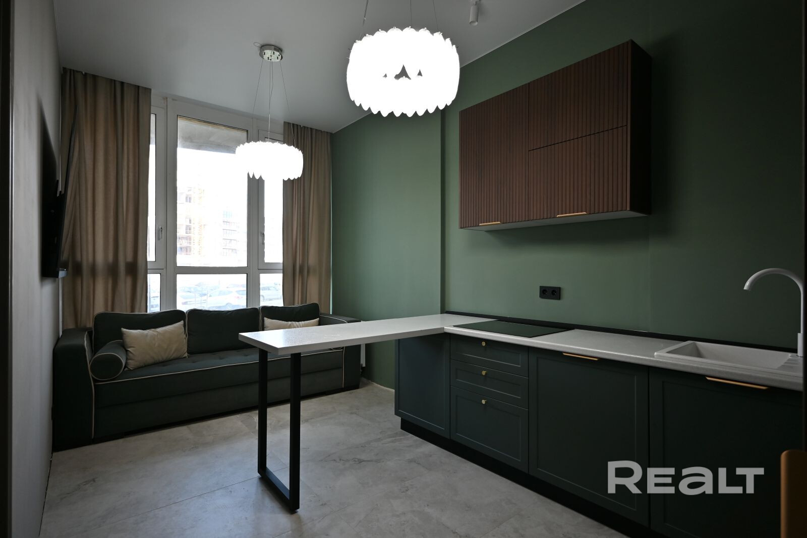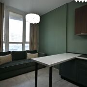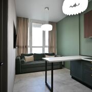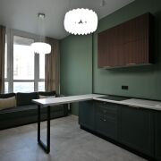 Квартира имеет современный ремонт с грамотным зонированием (отдельная спальня и гардеробная комната с постирочной). На полу уложена широкоформатная плитка, в спальне – виниловое покрытие, подобранная стильнаяцветовая гамма стен создаёт яркую и приятную атмосферу. Кухня оборудована всей необходимой встраиваемой техникой, санузел облицован плиткой современного образца, установлена инсталляция. Особое внимание стоит уделить дверям из шпона, которые гармонично дополняют интерьер квартиры. Они не только эстетически привлекательны, но и отличаются высокой прочностью и долговечностью. В квартире также остаются стильный диван с антивандальным покрытием и большой телевизор.
