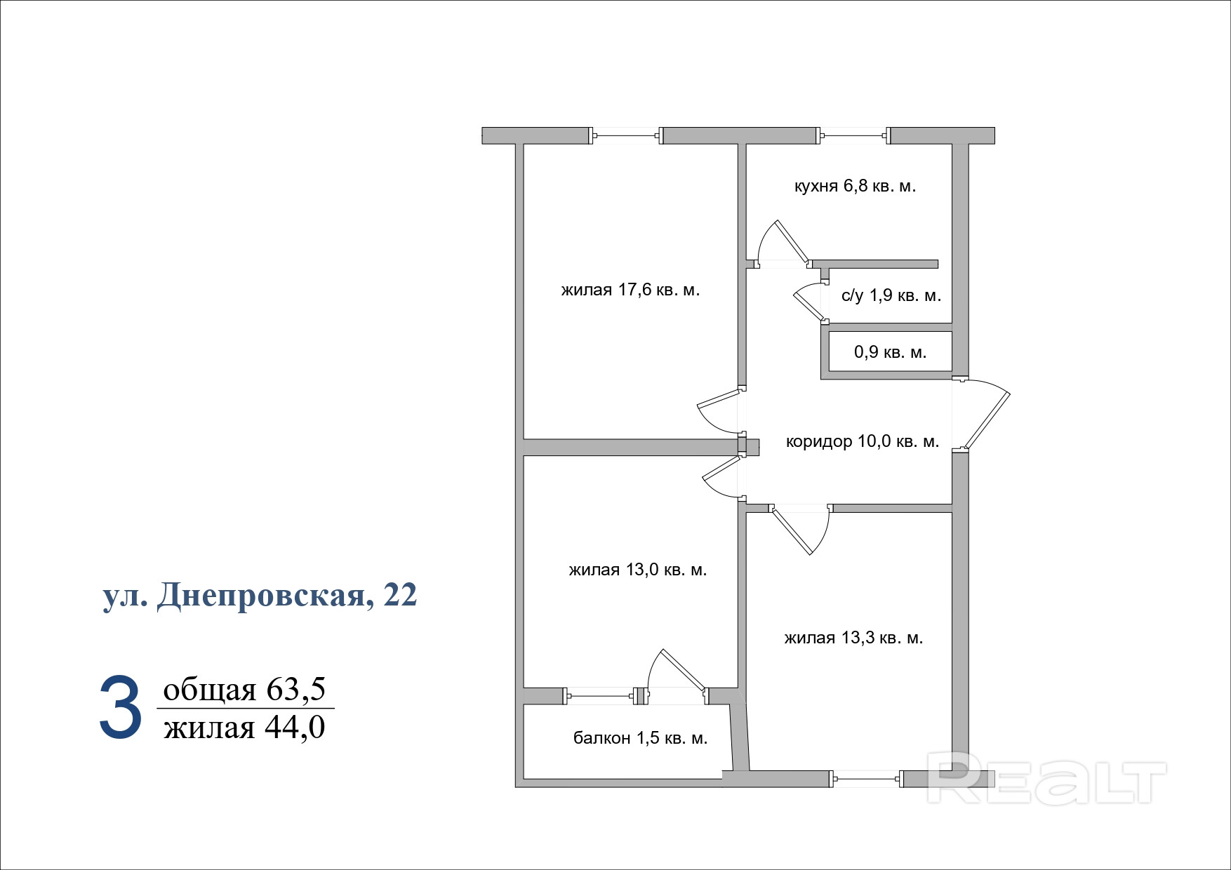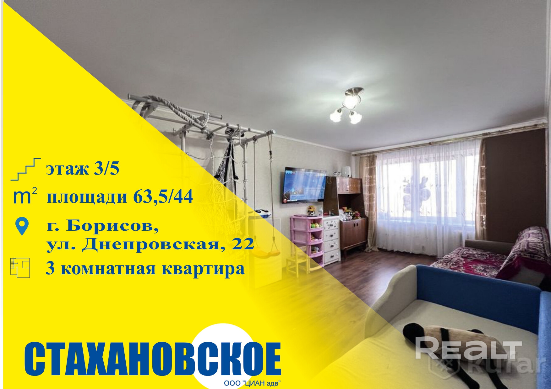 Купить 3-комнатную квартиру, г. Борисов, ул. Днепровская, 22
