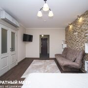 Жилое помещение – комната 17.9 кв.м. Совмещает в себе сразу два пространства. Первое: гостиная группа для уютных вечеров за настольными играми, перед телевизором или беседами с друзьями. Вторая: спальня с большой кроватью, новым ортопедическим матрасом и блэкаут рольшторами для полного восстановления сил.