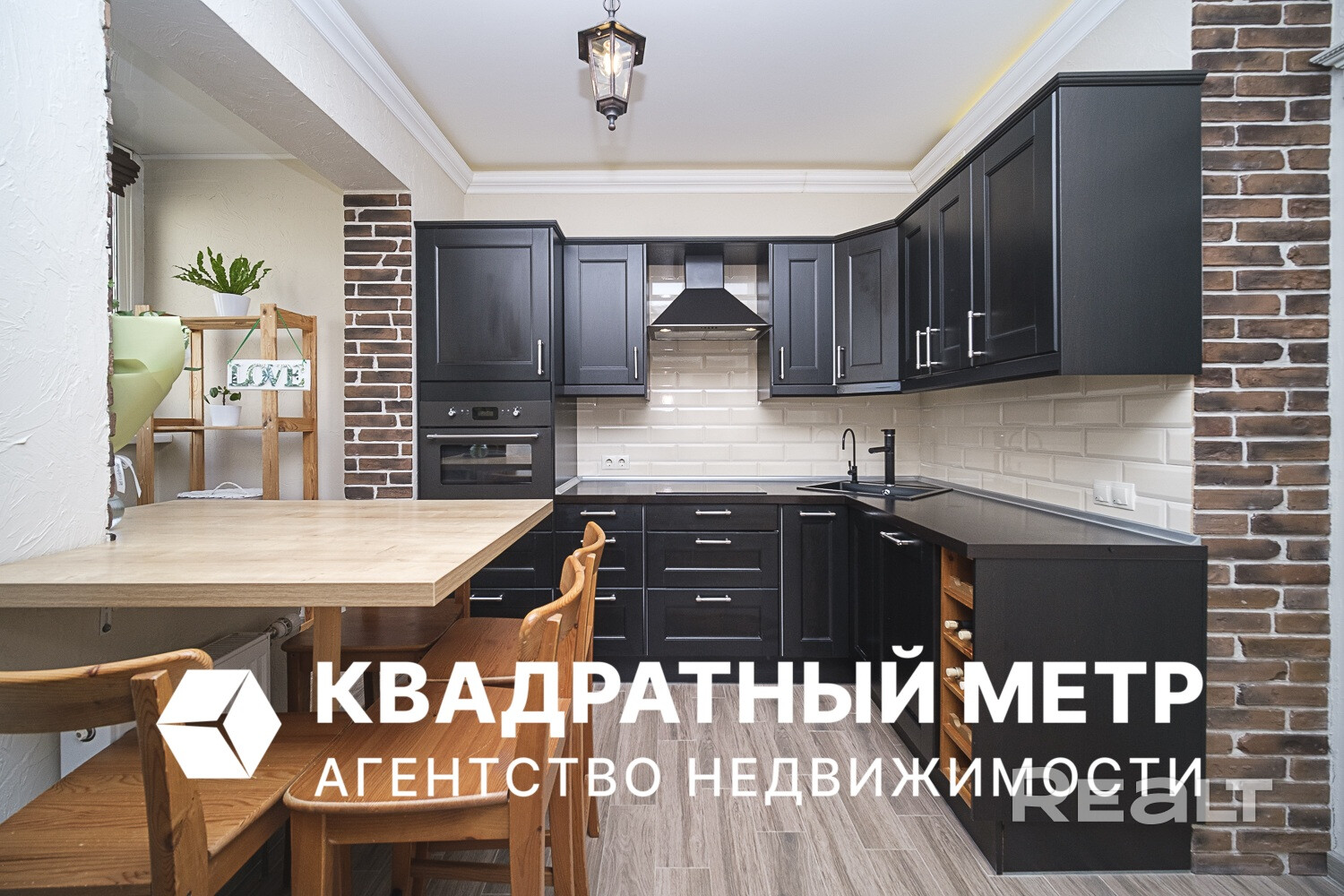 Выполнен качественный ремонт из натуральных материалов: напольное покрытие – паркет из массива ясеня, плитка керамогранит, в кухне пол с электро-подогревом, на стенах декоративная штукатурка и клинкерный кирпич, потолки окрашены, межкомнатные двери из массива на магнитных замках, сплит-система кондиционирования и очистки воздуха, окна ПВХ, металлическая входная дверь.