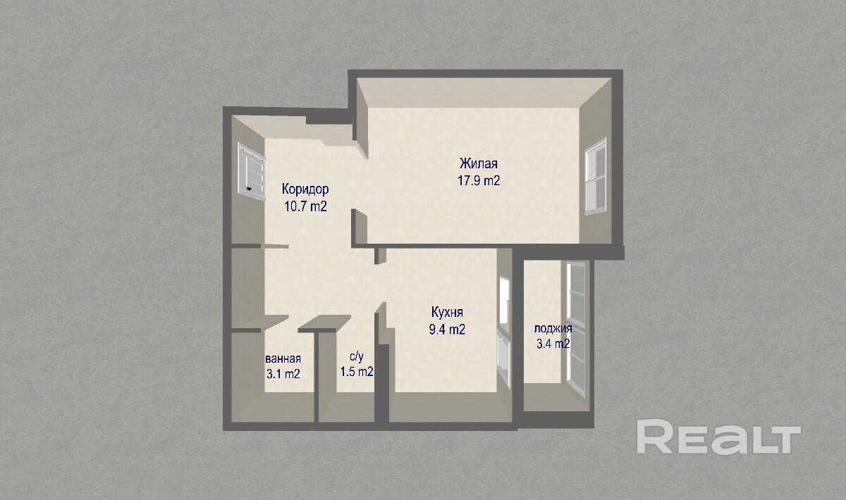 Общая площадь квартиры по СНБ 45.00 кв.м. Высота помещения 2.64 кв.м. Каждый сантиметр использован с умом. Всё, что представлено на фотографиях, останется новому владельцу.