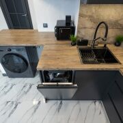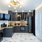 Отдельного внимания заслуживает кухонная зона – продуманная эргономика, индивидуальный проект, премиальная техника, качественная фурнитура., сделана естественная вентиляция!