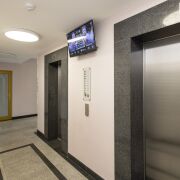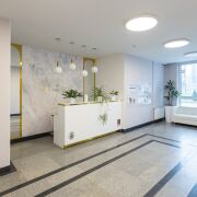 Стильный, современный, проходной подъезд - лобби с зоной ожидания и туалетом.