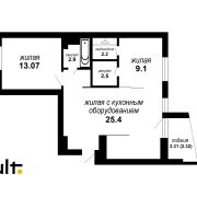 Пространство организовано с учетом современных стандартов: две полноценные спальни, просторная кухня-гостиная площадью 25,4 м2, гардеробная и два санузла.