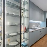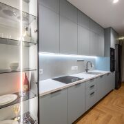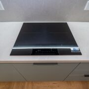 - Встроенная кухня оборудована премиальной встроенной техникой Bosch: индукционная панель, духовой шкаф, СВЧ, холодильник и посудомоечная машина.
