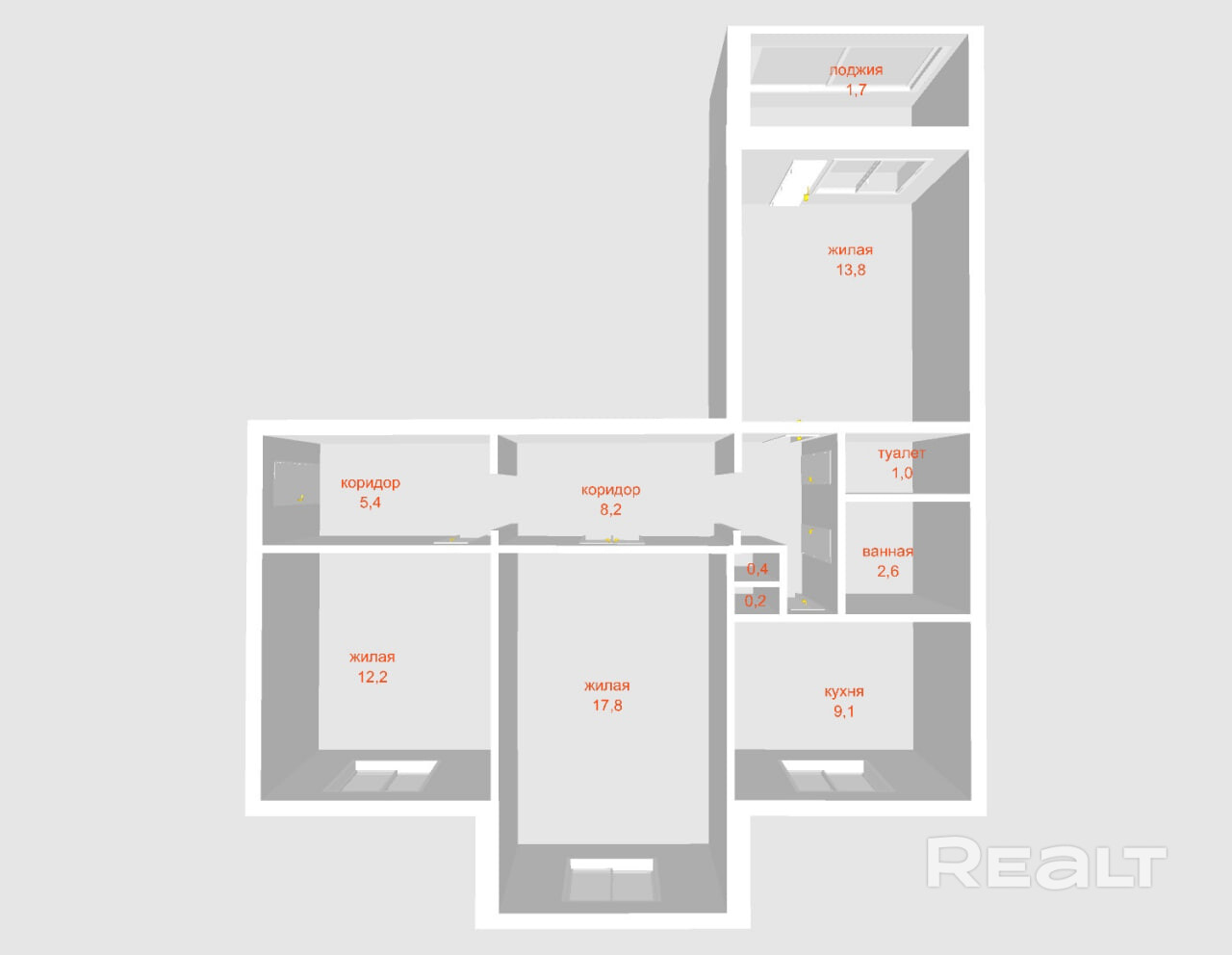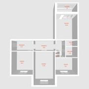 Три изолированные комнаты: 17.8 кв.м., 13.8 кв.м., 12.2 кв.м.