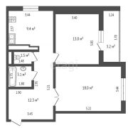 - Площадь по СНБ – 60,5 м2, жилая – 31 м2, кухня – 9,4 м2