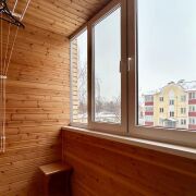 -Лоджия утеплена и обшита вагонкой, окна выходят в тихий зелёный двор - идеальное место для утреннего кофе или небольшого рабочего места.