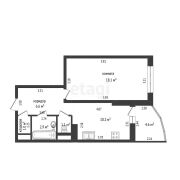 - жилая комната – 18,1 м2, кухня – 10,2 м2;
