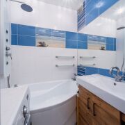 - хороший и аккуратный ремонт: в комнате установлен стеклопакет повышенной шумоизоляции. Ванна Тритон на 300 л - качественная и удобная в эксплуатации с каскадным изливом, плитка в ванной и санузле польская. Душевая система с тропическим душем и массажными элементами. На балконе беговая дорожка и силовые тренажеры. Посудомоечная машина Ariston, плита Bosh и духовой шкаф, холодильник LG;
