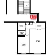 Общая площадь 36.6 кв.м. , жилая комната – 16.7 кв.м., кухня 9.1 кв.м.