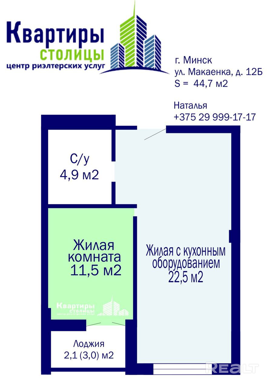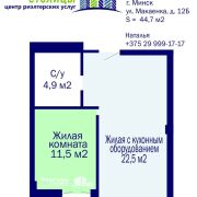 Метраж квартиры: общ 44.7 жилая с кухонным оборудованием 37.7