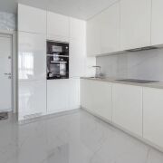 Встроенный холодильник, индукционная панель, духовой шкаф, СВЧ, посудомоечная машина, стиральная машина, робот-пылесос, фильтры, измельчитель отходов и вытяжка.
