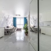 Состояние квартиры: свежий, стильный, качественный и современный ремонт. На стенах обои, декоративная штукатурка на полу плитка и ламинат, потолок натяжной, установлен кондиционер, много естественного света и зон искусственного освещения. Квартира полностью укомплектована необходимой мебелью и техникой. Готова для проживания или для сдачи в аренду как на долгосрок, так и на сутки.