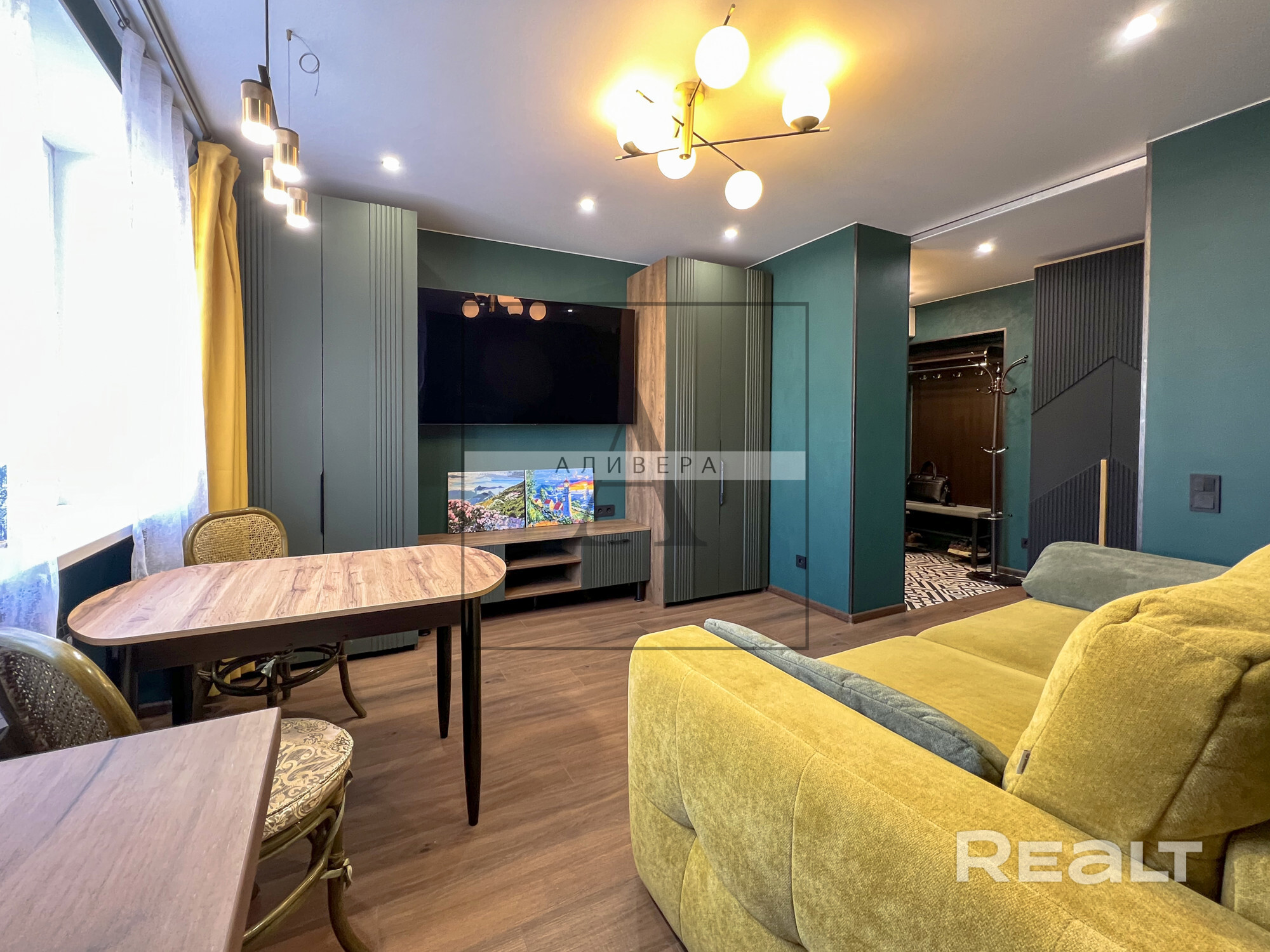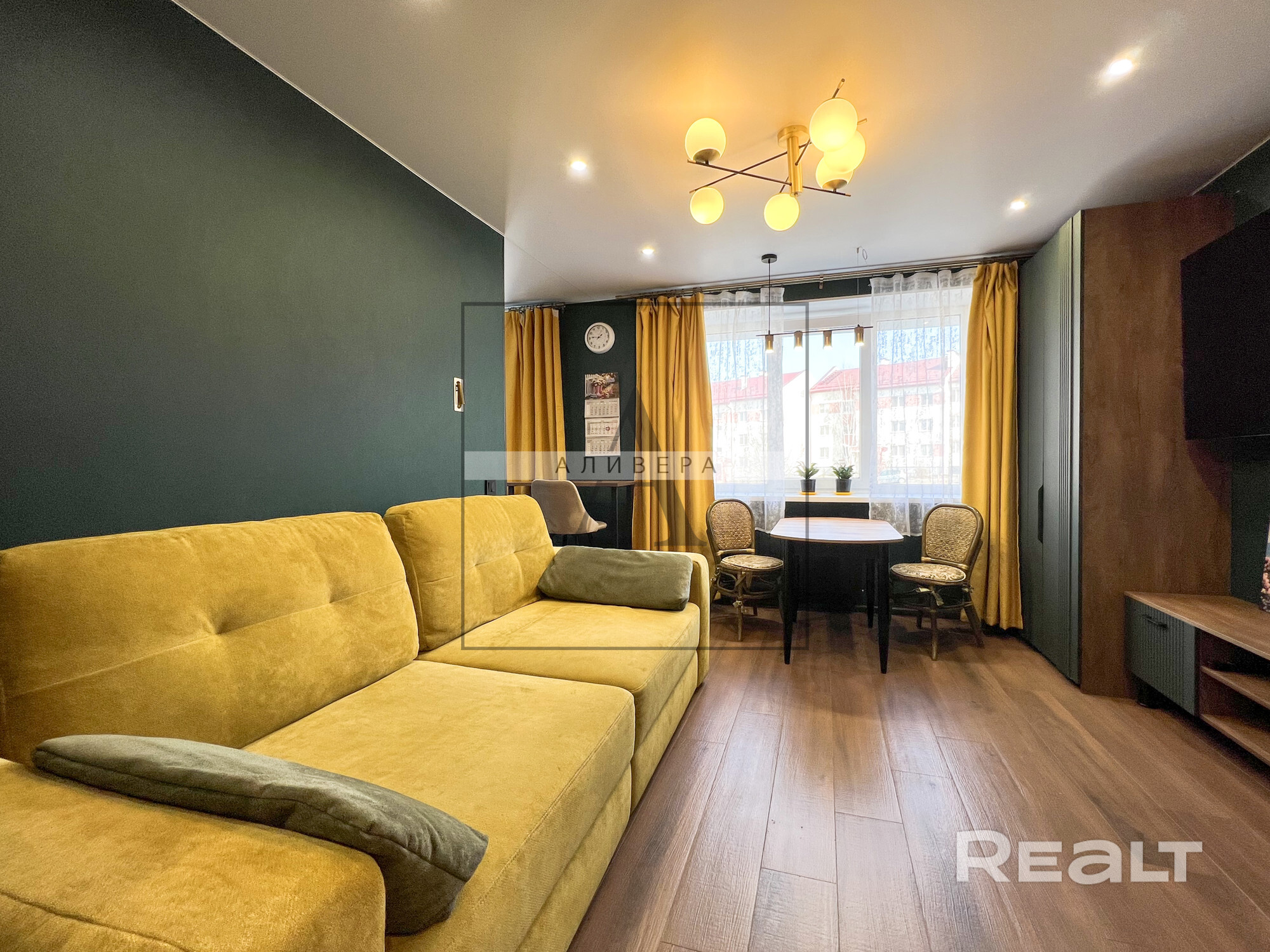 - Жилая S - 35.5 кв.м. (одна из комнат совмещена с кухонной зоной и является полноценной кухней-гостиной - планировка узаконена).