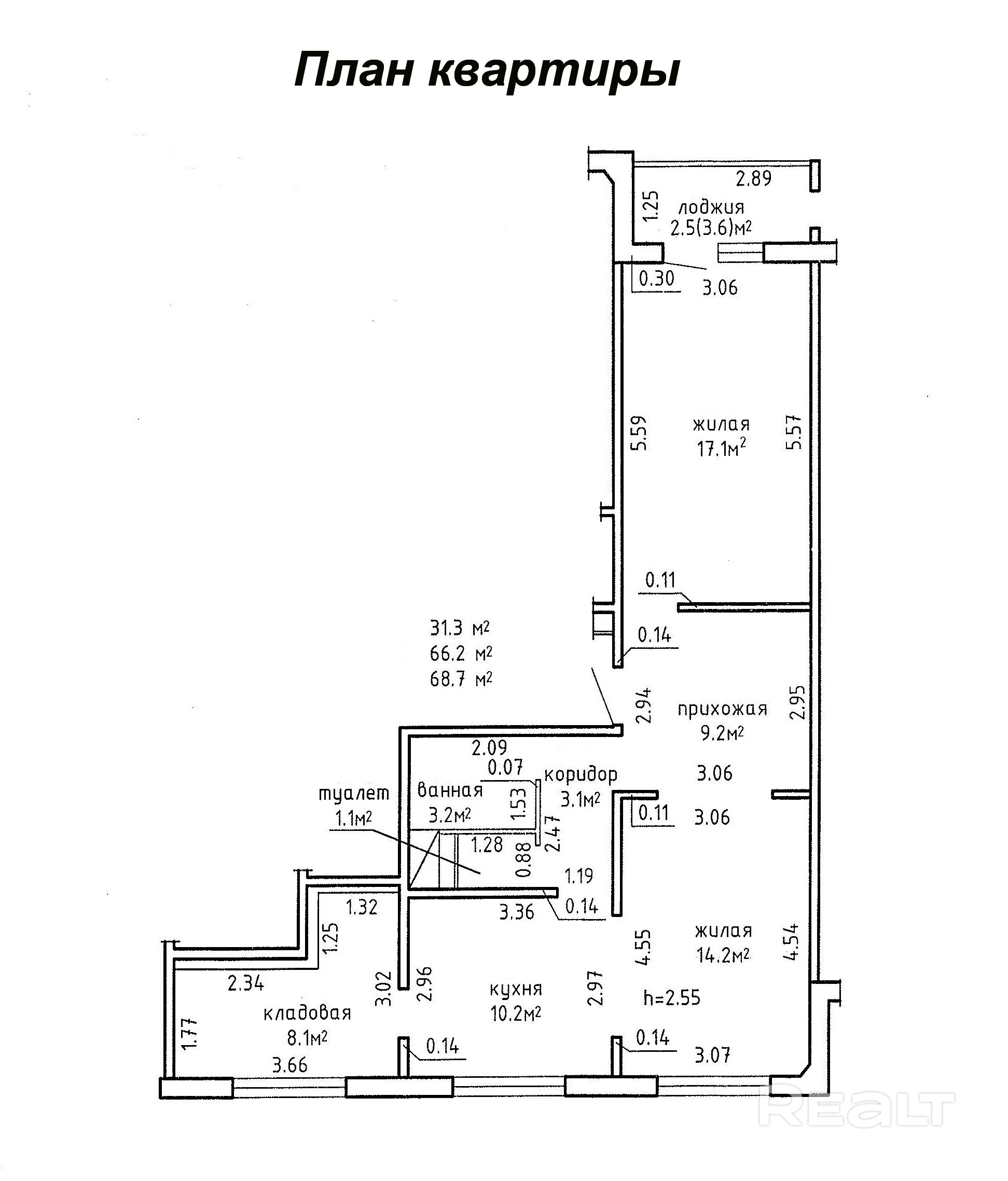 68.7 м²