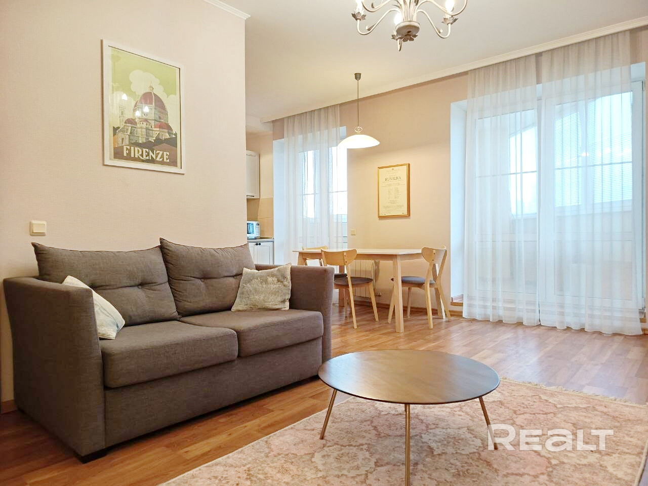 Двухкомнатная квартира в престижном доме. Большой балкон с видом на ул. Алибегова. В шаговой доступности парк. Закрытая парковка во дворе. Консьерж.
