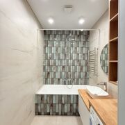 Ванная комната дополнительно оборудована теплым полом.