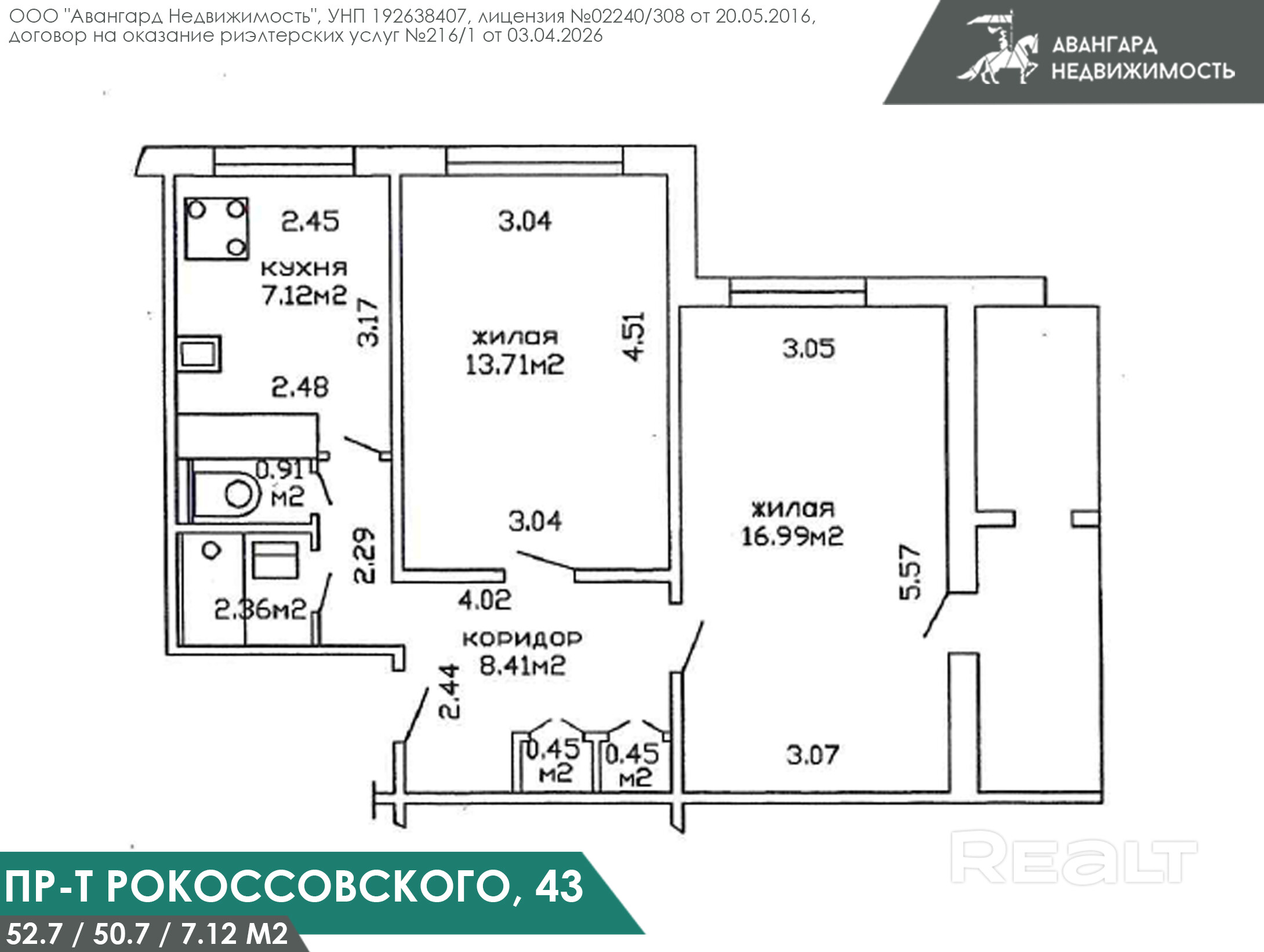 Купить 2-комнатную квартиру в Минске, пр-т Рокоссовского, 43