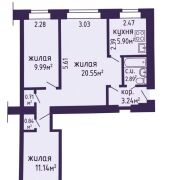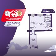 -3‑комнатная квартира 55,26 м2 (жилая 41,68 м2) на первом этаже 5‑этажного дома. Планировка удобная, окна выходят на две стороны дома.